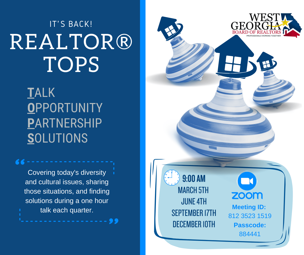 TOPS (Talk | Opportunity | Partnership | Solutions) A quarterly, one-hour discussion focused on today's diversity and cultural issues. Each session offers a platform to share real-world challenges and collaborate on finding effective solutions.