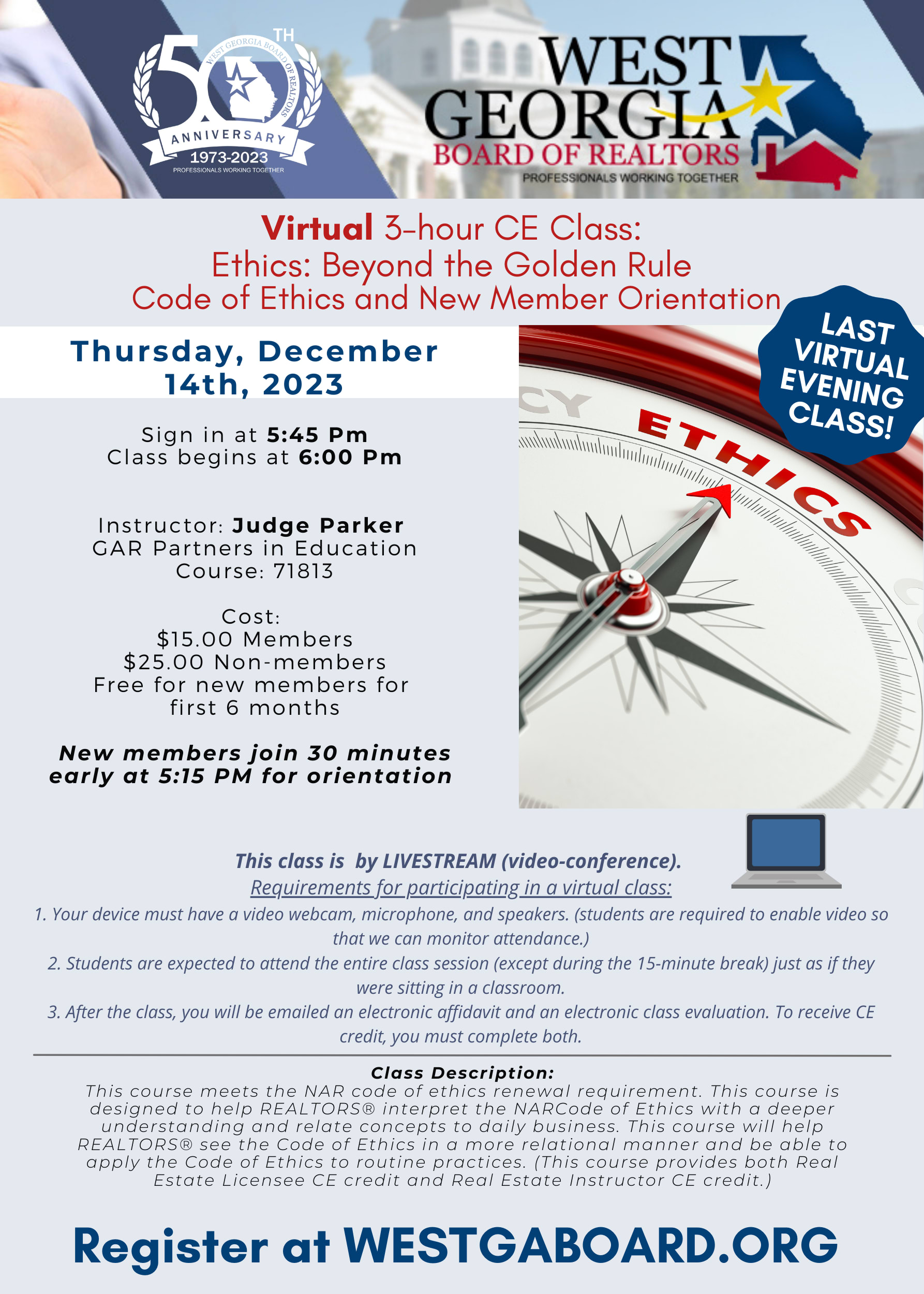 Virtual CE Class: Ethics: Beyond the Golden Rule & New Member Orientation